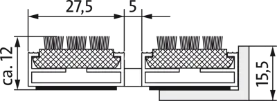 Infällda, motståndskraftiga, väderbeständiga kassettprofiler, försedda med parallella borstbuntar. Faktisk höjd på mattan: + 1 till 2 mm.