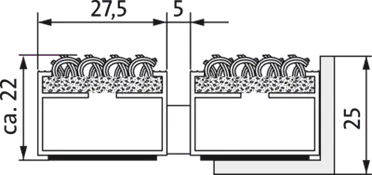 Från en profillängd på 3000 mm eller en maximal mattan vikt på 25 kg. Profil längder från 2300 mm mot tilläggsavgift. Mattans delning kan fås på kundens begäran.