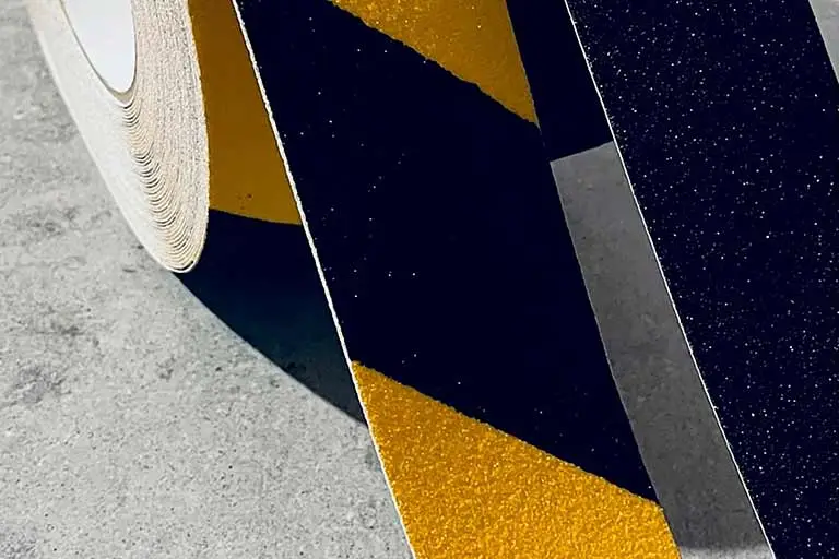 Halskyddstejp för med högt halkskydd och högkvalitativt adhesiv.
