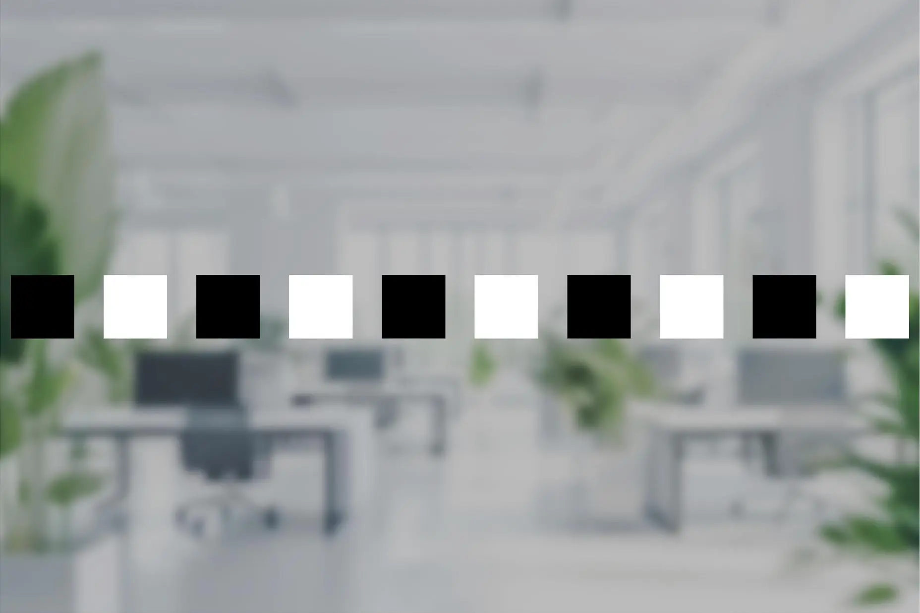 Kontrastmarkeringar till glaspartier, fönster och glasdörrar. Välj mellan färgerna vitt, svart, svart/vit eller kontakta oss om ni har andra önskemål. Folien är matt för att undvika ljusreflektioner. Kontrastmarkeringarna kommer i våder om 106,5 cm med 10 fyrkanter per våd, och är försedda med appliceringstejp för ett smidigt och enkelt montage.