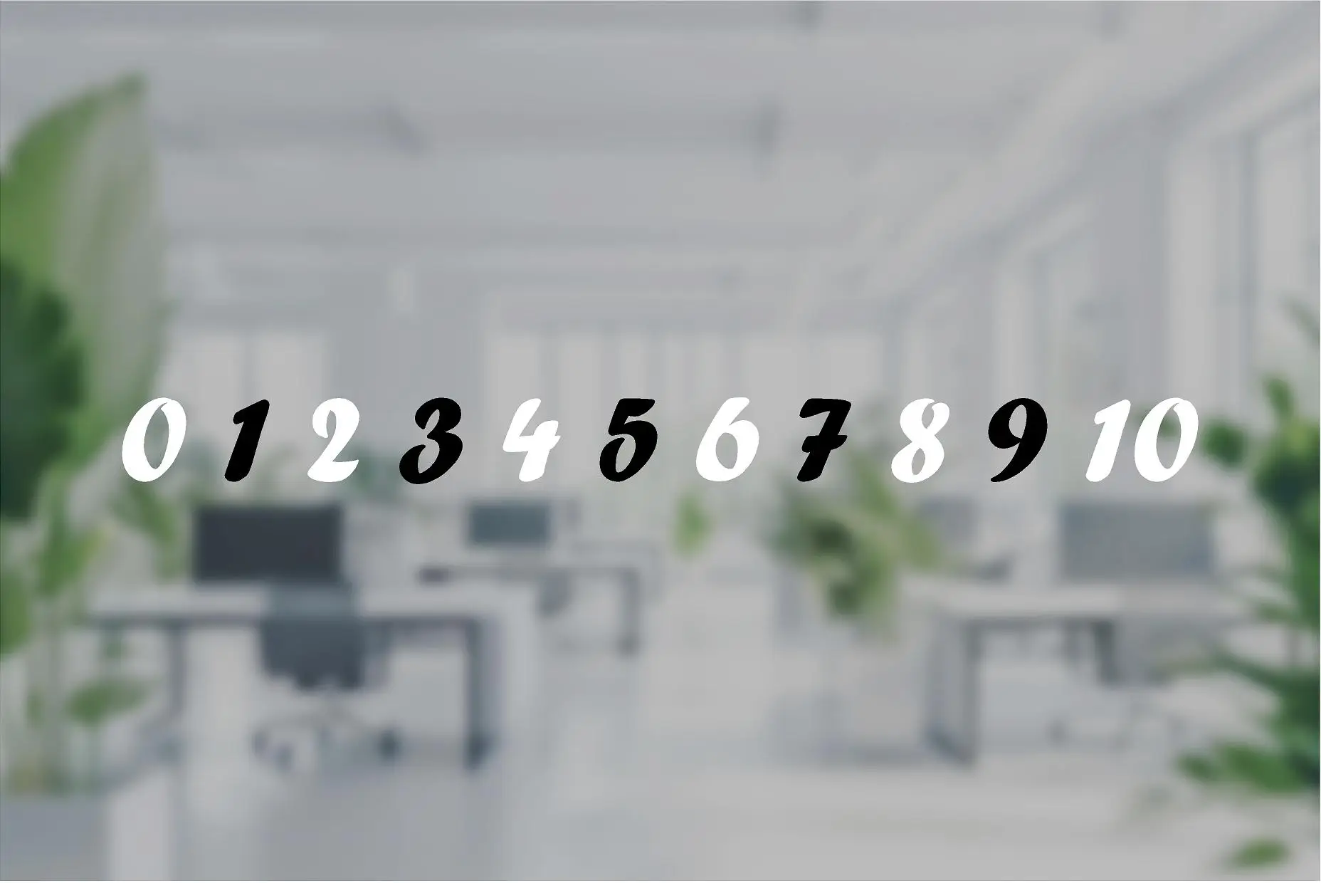 Kontrastmarkeringar till glaspartier, fönster och glasdörrar. Välj mellan färgerna vitt, svart, svart/vit eller kontakta oss om ni har andra önskemål. Folien är matt för att undvika ljusreflektioner. Kontrastmarkeringarna kommer i våder om 93cm med 12 siffror per våd (0-10), och är försedda med appliceringstejp för ett smidigt och enkelt montage.