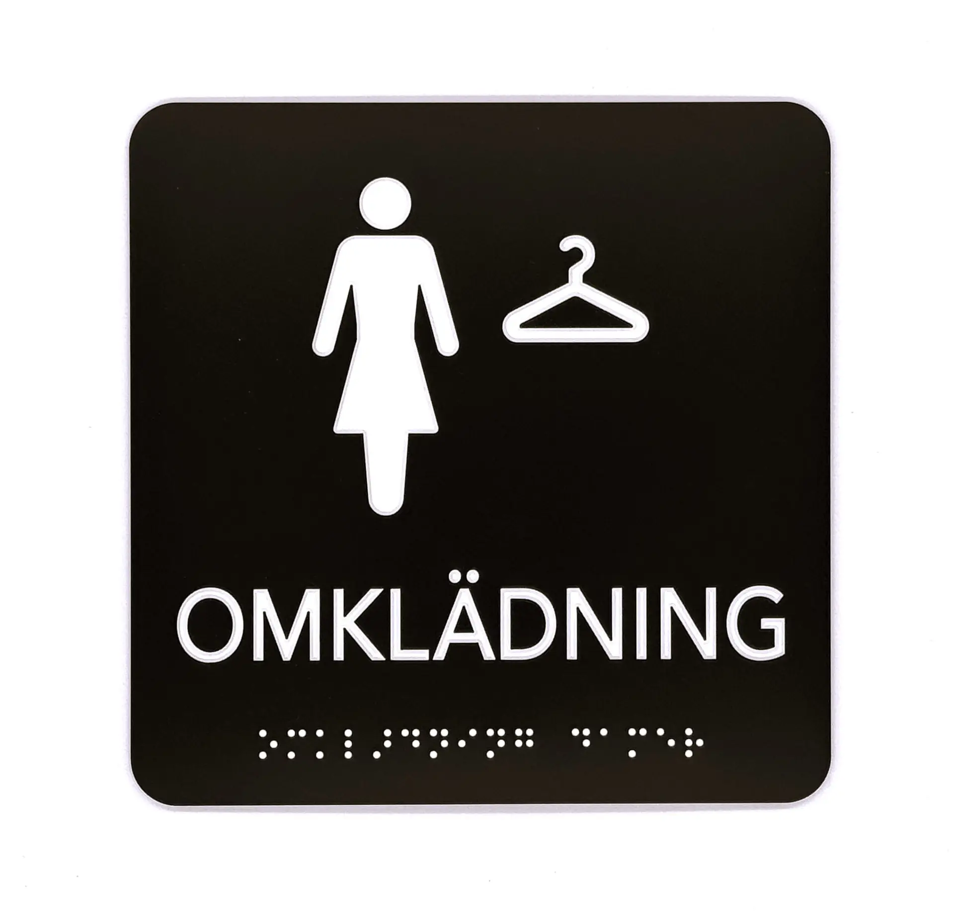Taktil skylt, mörkgrå: OMKLÄDNING DAM