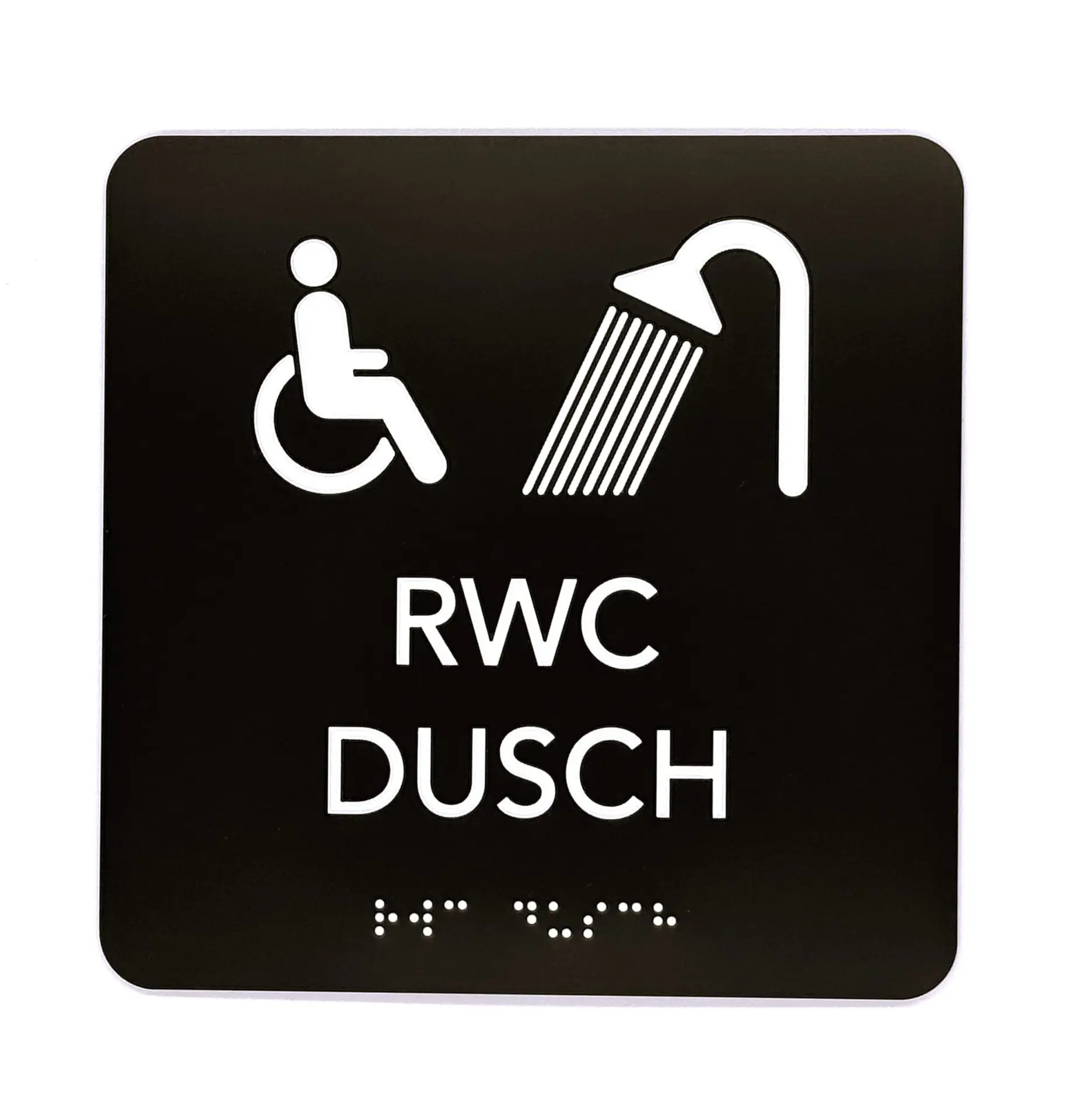 Taktil skylt, mörkgrå: RWC/DUSCH